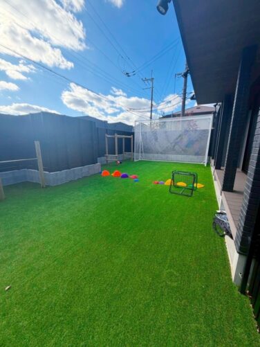 サッカー 人工芝施工・ゴール組立・ネット施工 箕面市 戸建庭 86平米 DX28㎜ 使用
