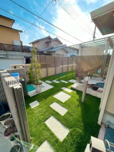 施工事例 人工芝施工 吹田市竹見台 庭23平米 DX38㎜使用