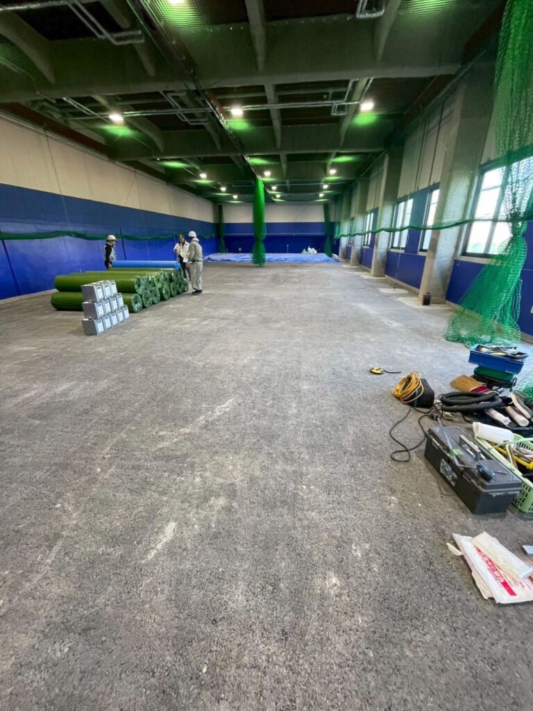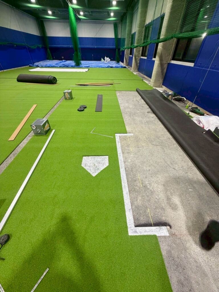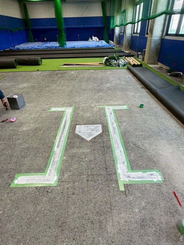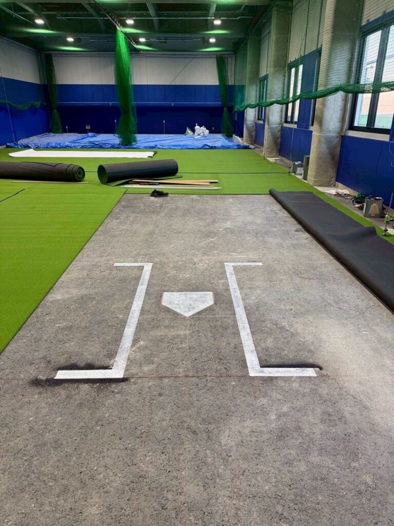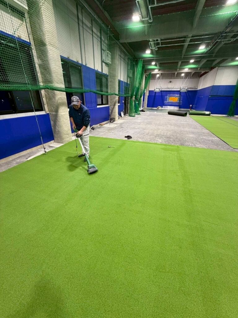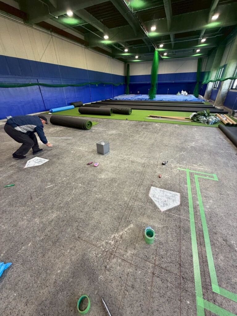 室内野球練習施設への人工芝施工のご依頼をいただきました。