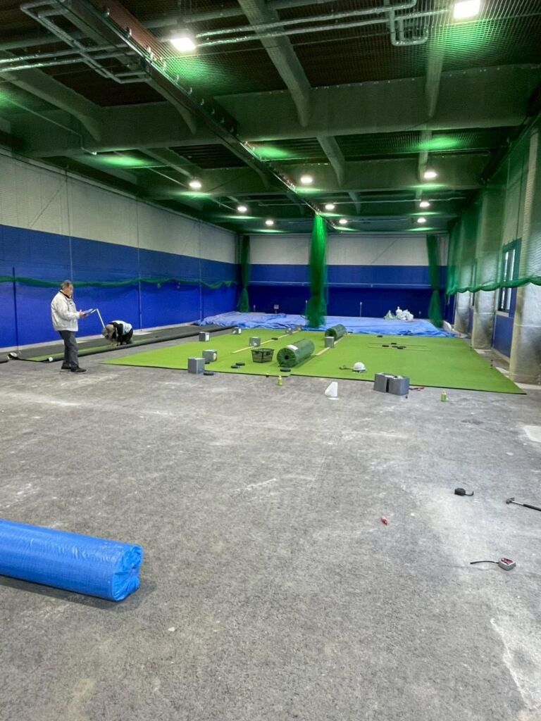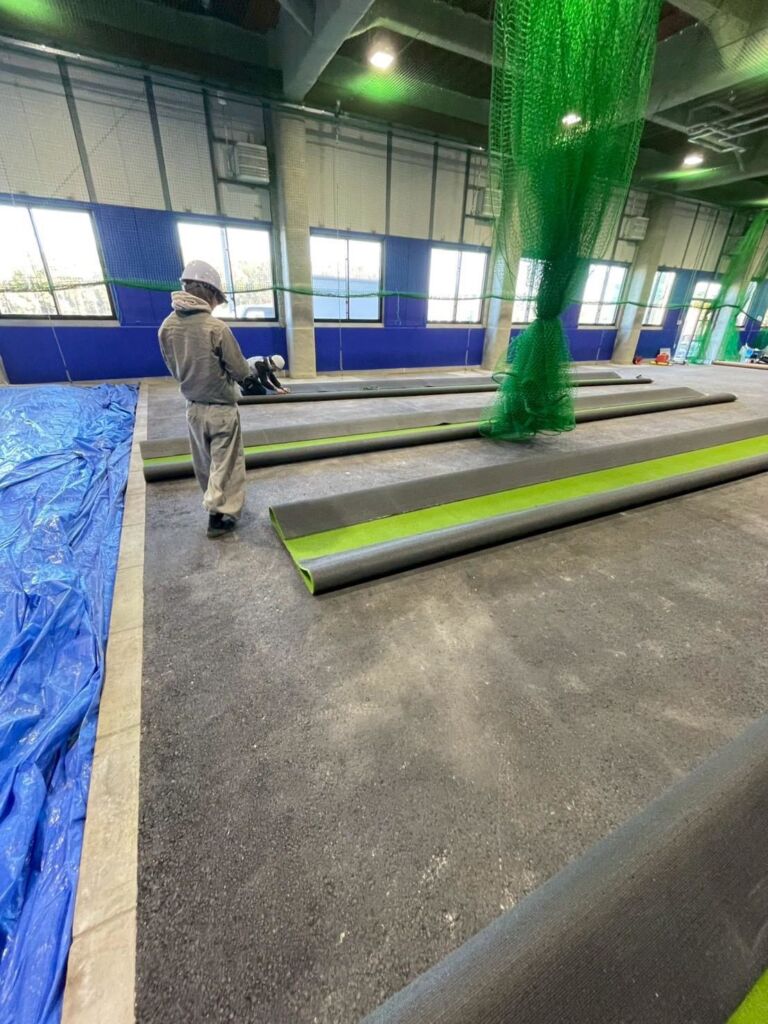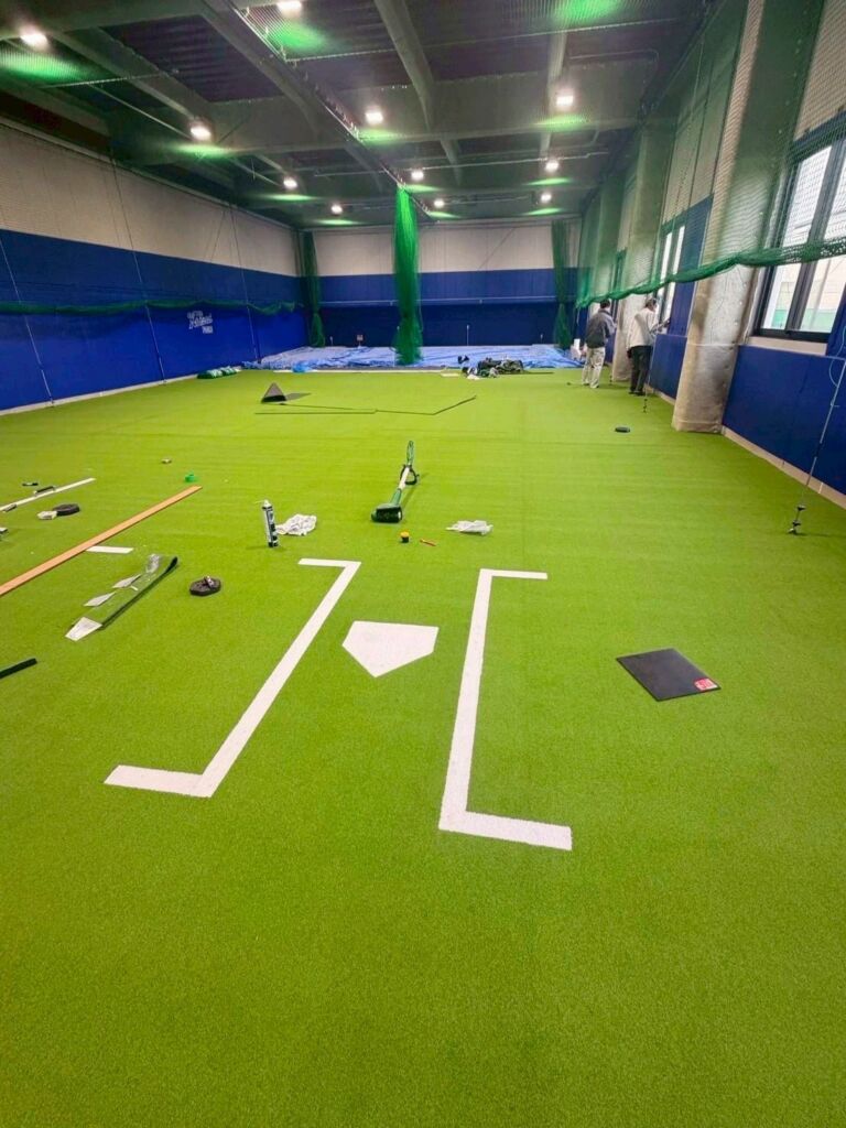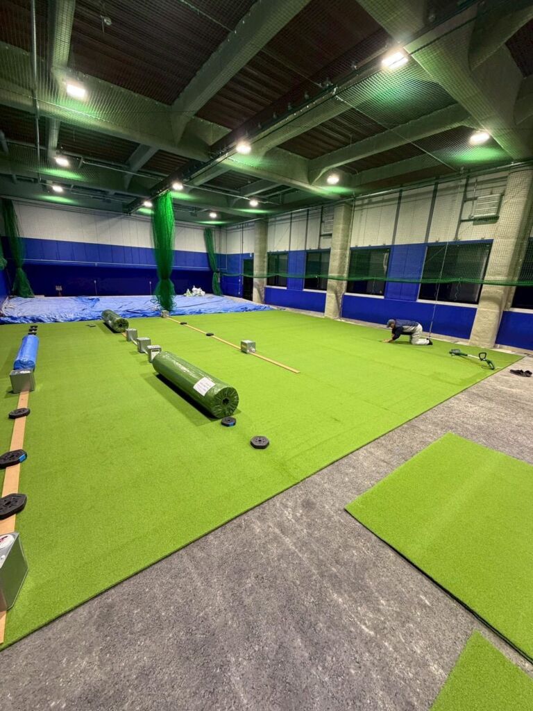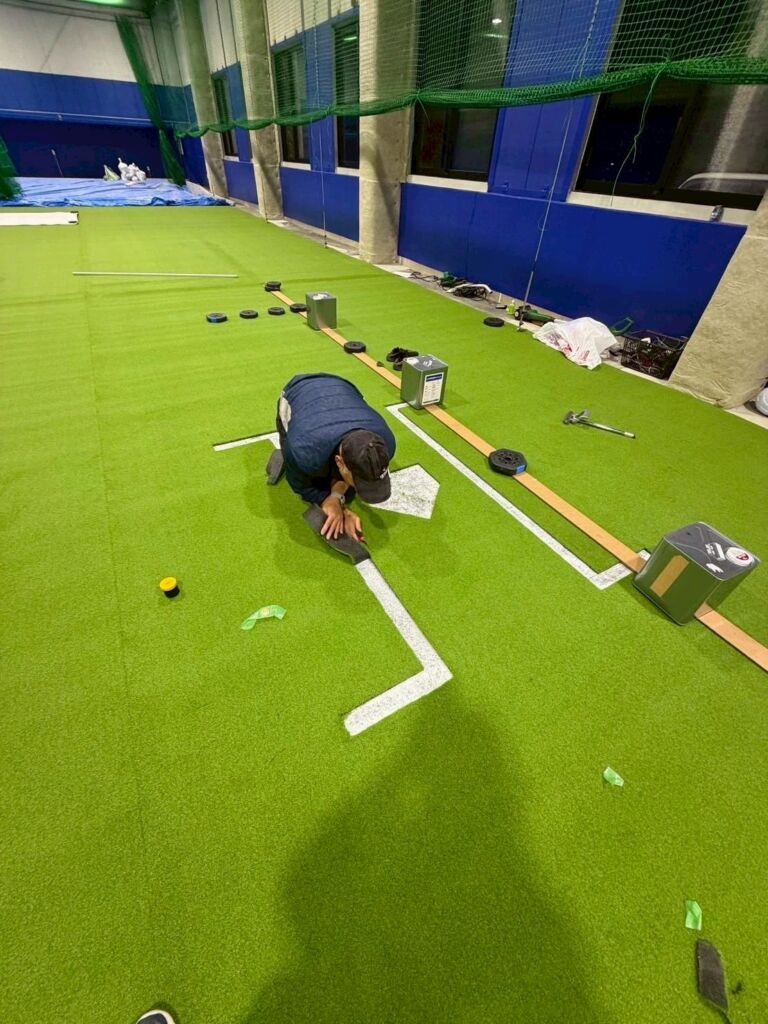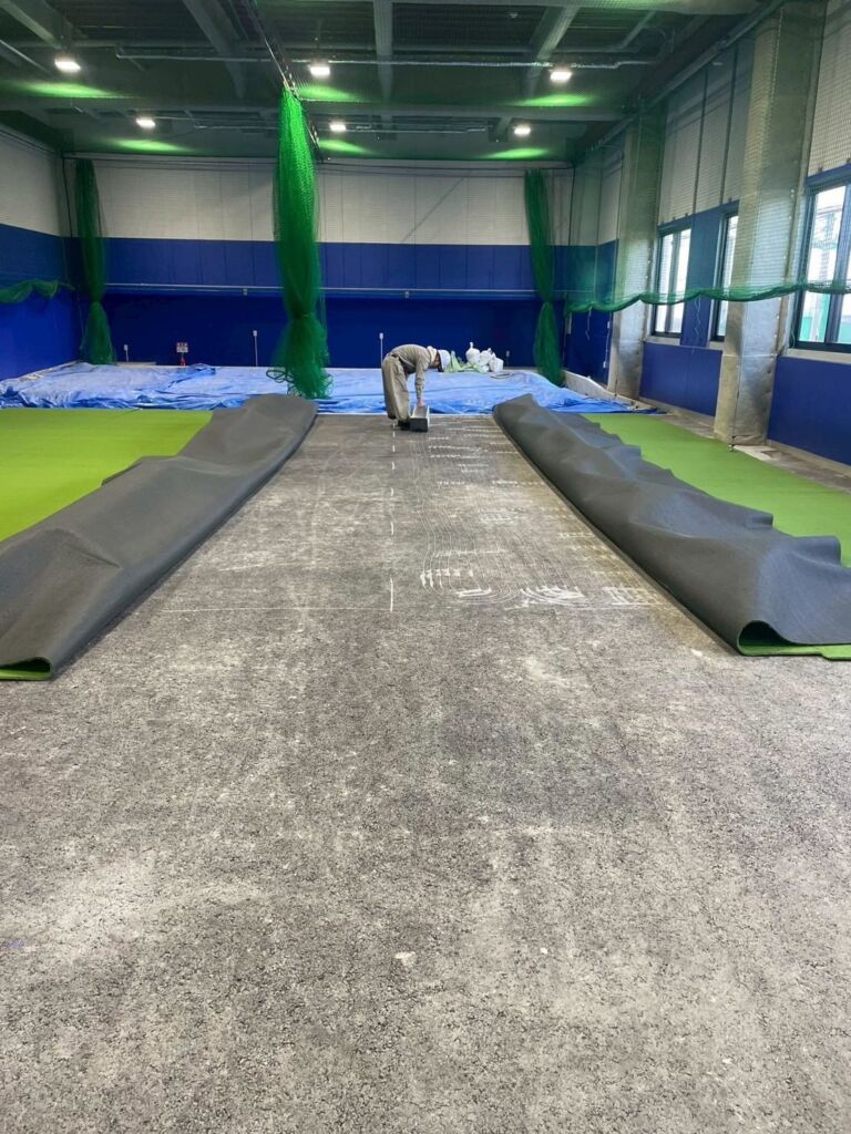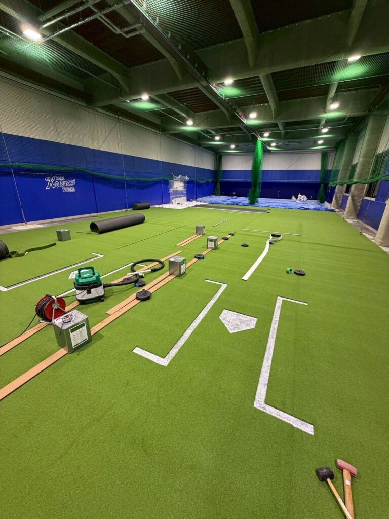 室内野球練習施設への人工芝施工のご依頼をいただきました。