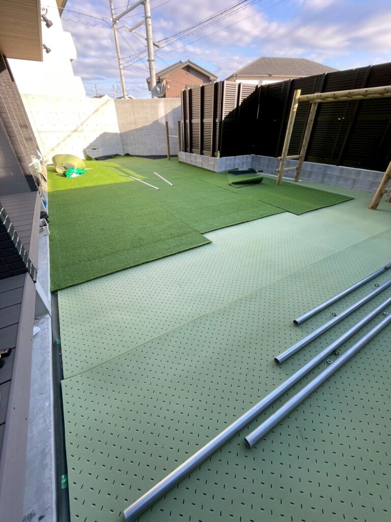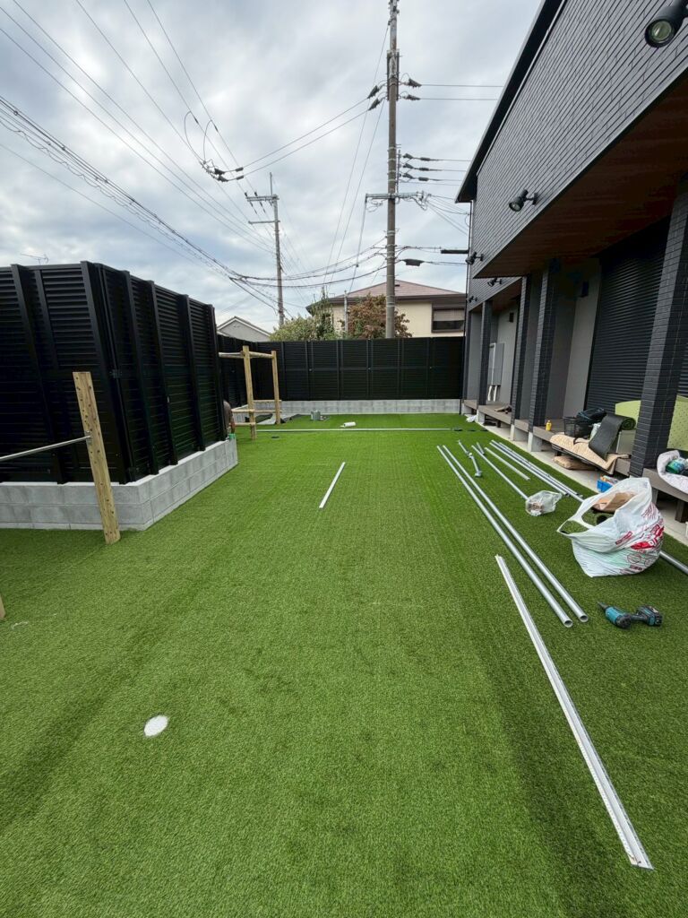 人工芝施工・ゴール組立・ネット施工 箕面市 戸建庭 86平米 DX28㎜ 使用 サッカー 2026.01.062026.01.08 施工日数 3日間 種類 DX28㎜、ゴール組立・ネット施工 Before 戸建のお庭にて人工芝施工・ゴールの組立・ネット施工のご依頼をいただきました。 After お庭一面に人工芝を敷設し、ゴールとネットを設置することで、 ご自宅にいながら思いきり体を動かせるプライベート空間が完成しました。 人工芝ならではのクッション性と耐久性で、安心・安全に長くお使いいただけます。 この度は、誠にありがとうございました。