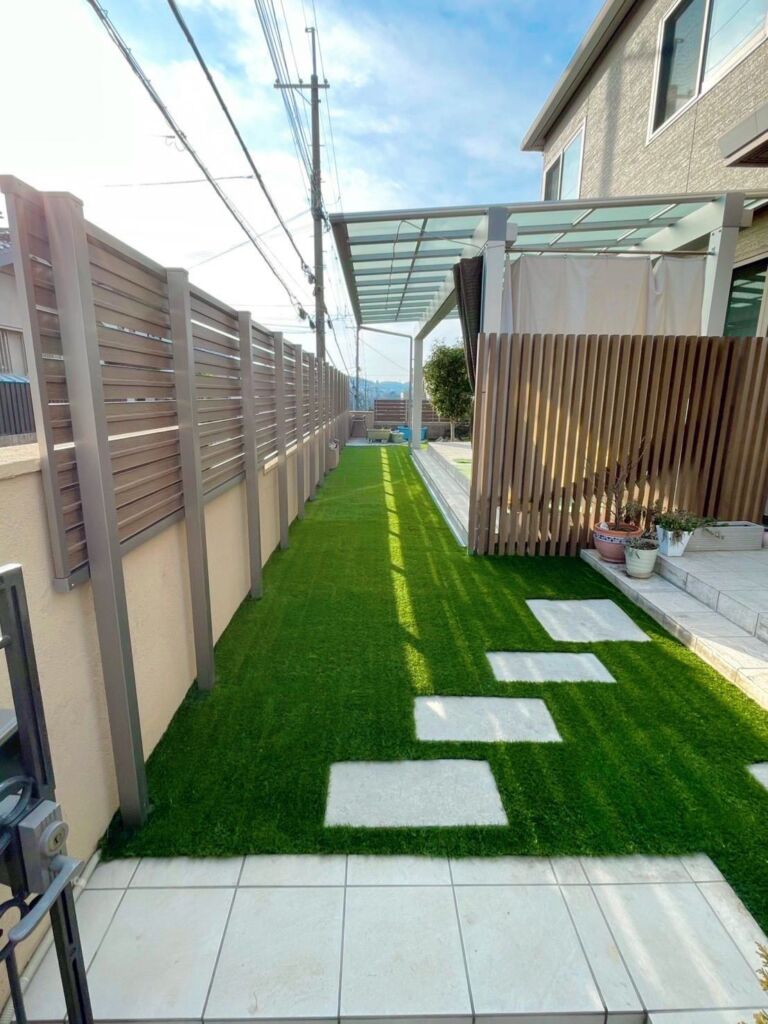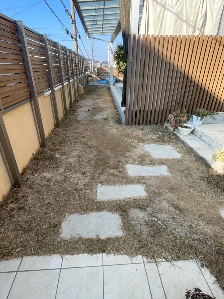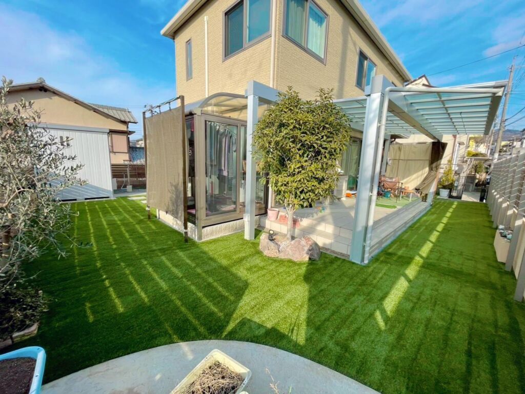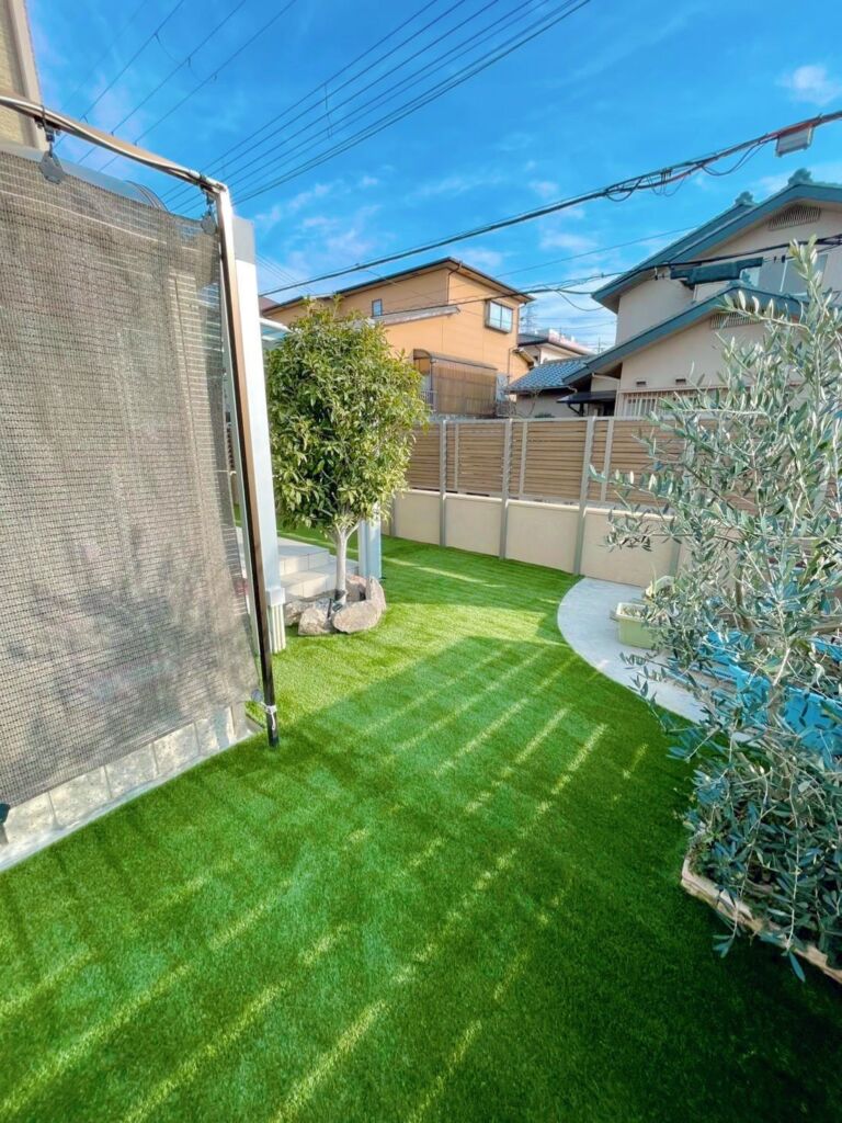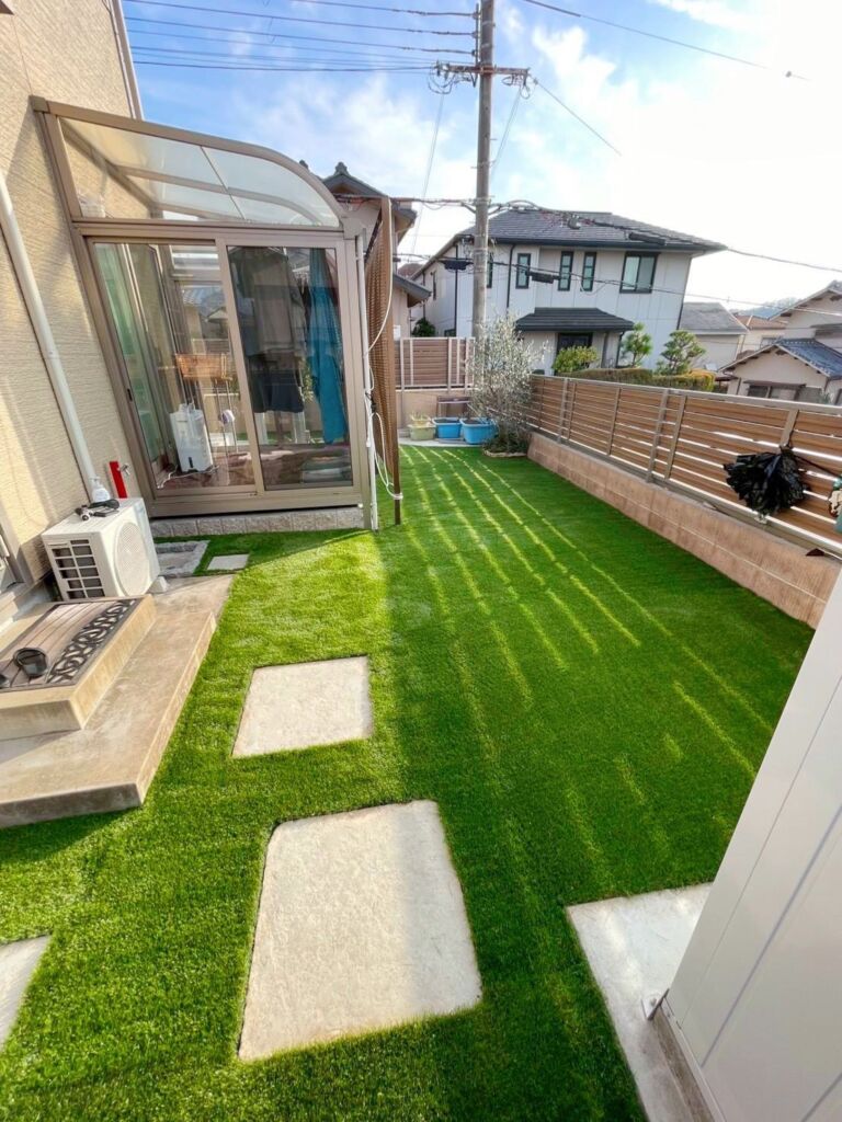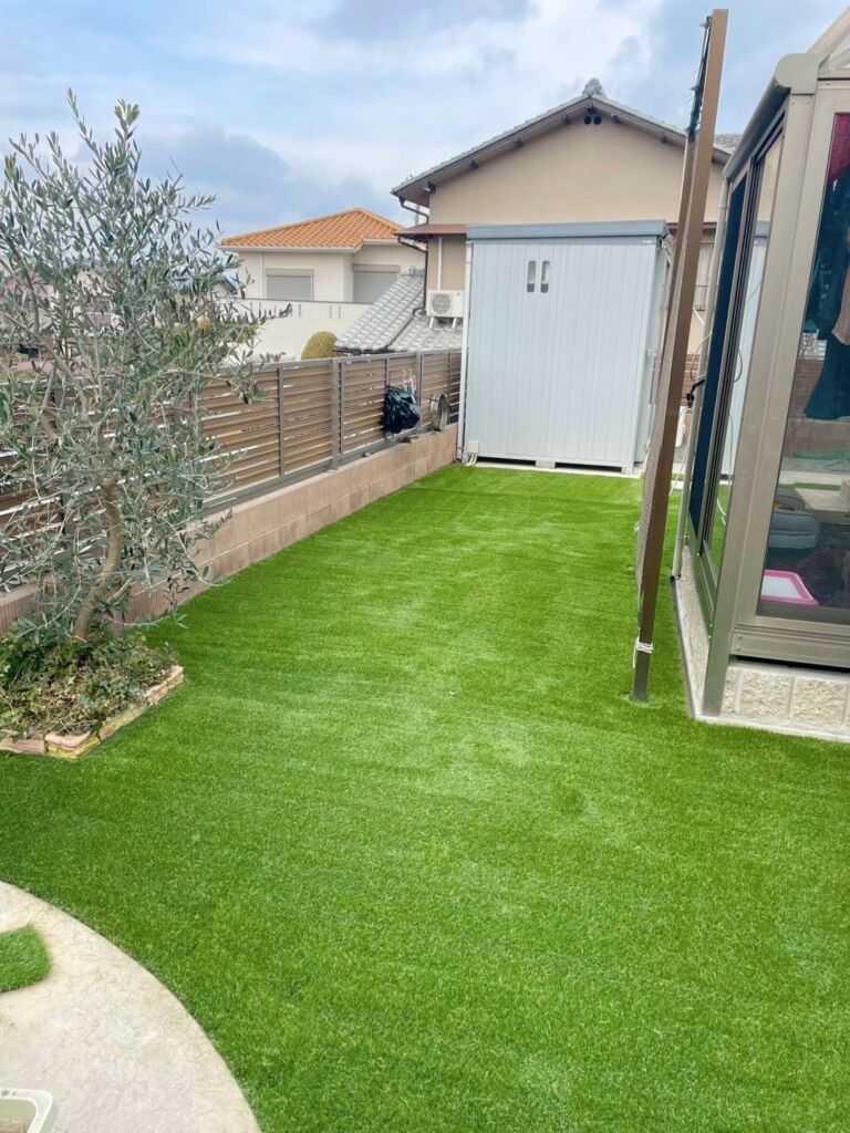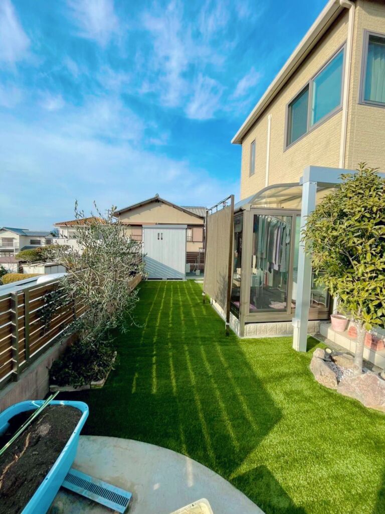 これまで雑草のお手入れにお悩みでしたが、人工芝を敷設することで草むしりの手間から解放され、一年を通して美しい緑を保てる快適な空間へと生まれ変わりました。