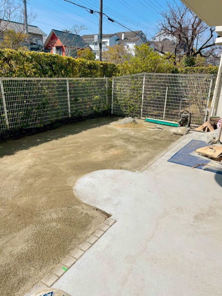 神戸市西区で天然芝撤去・人工芝施工・伐採撤去|庭30㎡・DX38㎜使用・雑草対策・庭リフォーム